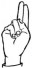 На ћирилици написано ЛАБУДА ТРИШОВИЋ састоји се из 14 слова [?]. Исписано ћириличном једноручном азбуком за глувонеме: